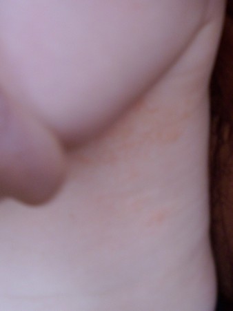 может от одежды, под ручки поднимали и натерло, ничего нового не одевали? порошок не меняли?