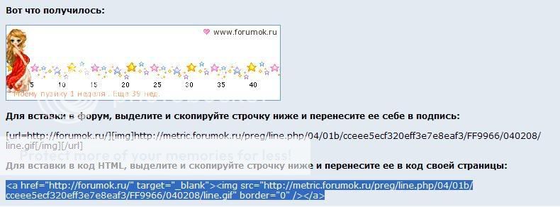 Если все устраивает, копируем код (конкретно для бэбиблога нужен html-код):