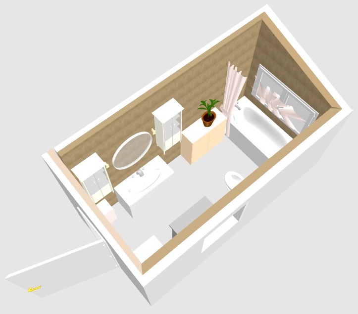 Вот на примере внизу видно, как программка помогает вернуться к реальности и не думать, что у тебя огромный будуар), как это представлялось на чертеже, а длинная и узкая ванная комнатуха. Но зато с окнами