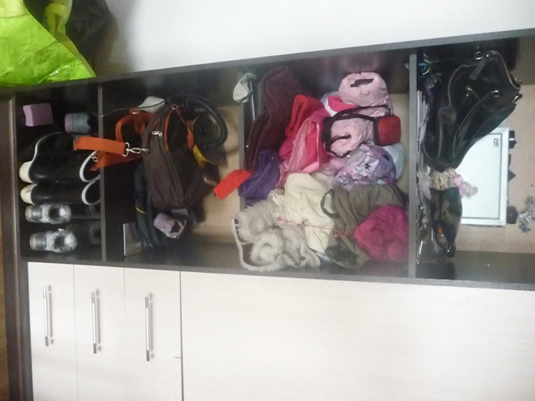 Это шкаф. На самом деле он должен быть закрыт. Дверца заела. Пришлось снять временно, а повесить пока не получается. Муж этот месяц работает весь день. Приезжает в 12. Повесим дверь- будет расхламление, а не хС)))