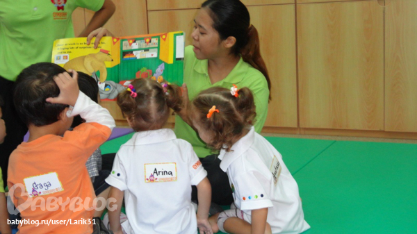 Самое интересное, что все это на английском языке -как это воспримутт в дальнейшем дети, если мы по русски то толком не говорим??))) В группу входят от 3 до 7 человек (зависит от занятия). Из них половина тайцы, половина - европейцы.