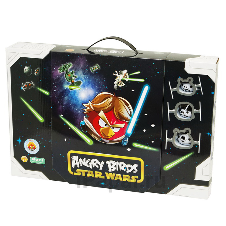 Комплектация:Подарочная коробка-кейс, 6 птиц, 5 свиней, 7 рамп, 4 элемента конструкции, пусковая установка со звуковыми эффектами, карточки с заданиями