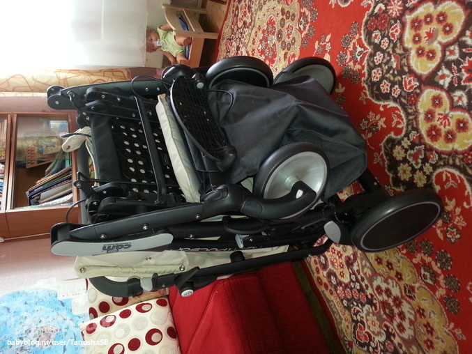 В нашем случае очень было важно,чтобы коляска была компактной при сложении,ибо мы часто ездим на машине всей семьей.Получается в салоне все места заняты и свободен только багажник.В наш седан она входит со свистом.Причем складывается вместе с сиденьями.Можно и отдельно,тогда вообще плоская станет.Причем складывается/раскладывается очень легко.При сложении не обязательно снимать колеса для компактности,передние сами подворачиваются.