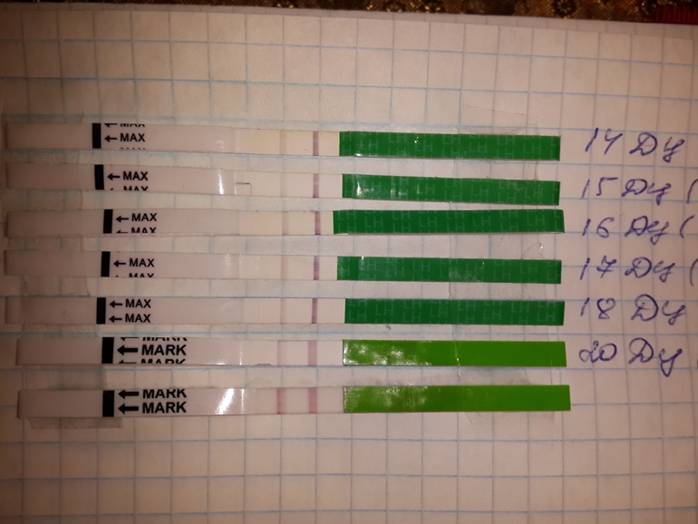 Овуляция( тесты на овуляцию)Девчули, доброго времени суток)) я вас со своей овуляцией задолбала наверно))) я как бы считаю, что у меня 8 дпо, но т.к. я не уверена была в О, то на всякий случай делаю тесты и на Б, и на О)))) посмотрите последний тестик))) который не подписан, это 21 дц, это она? тесты сначала были эвиплан, сейчас овуплан продолжаю, они подешевле))))