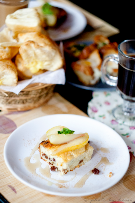 Творожная запеканка с карамелизированной грушей под кленовым сиропом