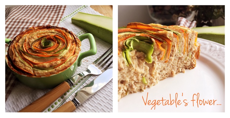 Диетические блюдаПодсмотрела я как-то это оформление на просторах интернета... И сидело оно в голове и сидело:) А сегодня выдался случай его применить на старом рецепте запеканке с тунцом, которую я уже показывала. С одним НО... кабачок теперь не внутри, а снаружи:) Еще и морковку для цвета добавила... и получился вот такой "овощной цветок"