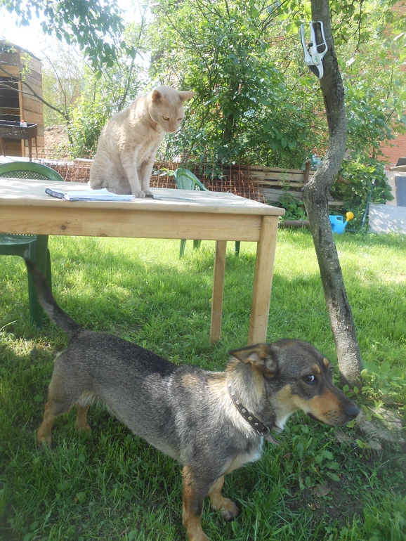 Ух, с каким азартом я взялась за дело: повыкорчевывала мертвое дерево, кучу отростков слив и расползшихся кустов на берегу, вынесла несколько мешков битого шифера, бутылок и прочего мусора, пообкарнала электропилой оставшиеся яблони и сливы, немного выровняла землей канавки… Но моя радость-это газон, засеяла эту площадку семенами и каждый день поливала. Через недельку скосила вырвавшиеся далеко вперед от обильного полива и солнцепека колючки и крапиву. А еще через некоторое время травка газонная настолько закрепилась, что начала потихоньку вытеснять прежний гадский покров. Потом еще перед ливнями семена клевера раскидала - тоже принялись.