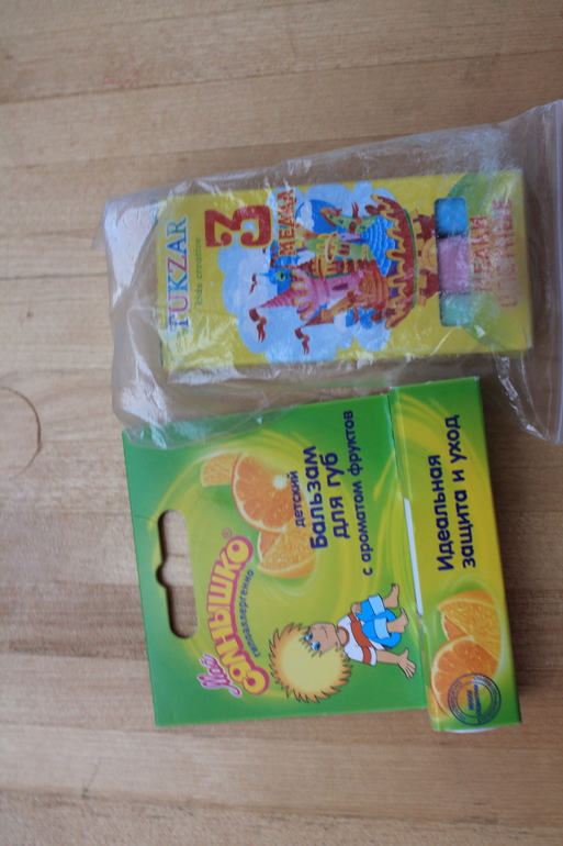 Подарочки для дочурки. Мелки, бальзам для губ. Все то, что у нас всегда быстро заканчивается.