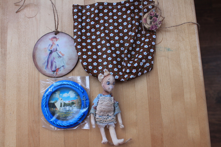 Вот такой был мешочек, а там такая классненькая, маленькая куколка. Как можно такую мизирную красотку сшить, я не представляю