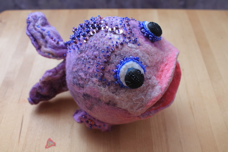 Рукоделки безумно красивые и качественные. Рыбка, а внутри была коробочка с маленькой рыбкой - брошью.