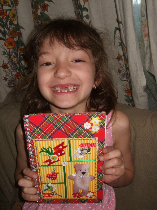 За блокнотик у нас с Алюшкой уже идет борьба:) Но она в нем не пишет, не рисует, а просто каждый раз переставляет его к себе на полочку и любуется им.