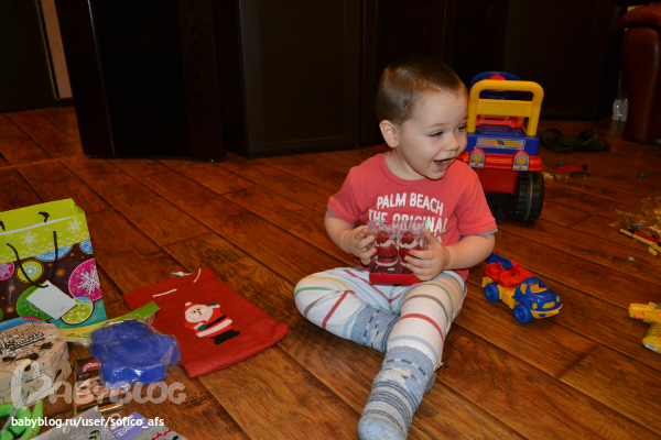 Ребенок был счастлив и рад до безумия, ну и мы с мужем тоже :)) Пока я ходила за ножницами, Сережка схватил посылку и бегал за мной по пятам.