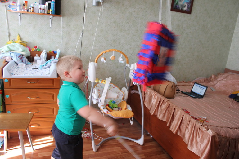Пиньяту Славик разбил довольно быстро, а потом приступил к сбору сувениров и сладостей...