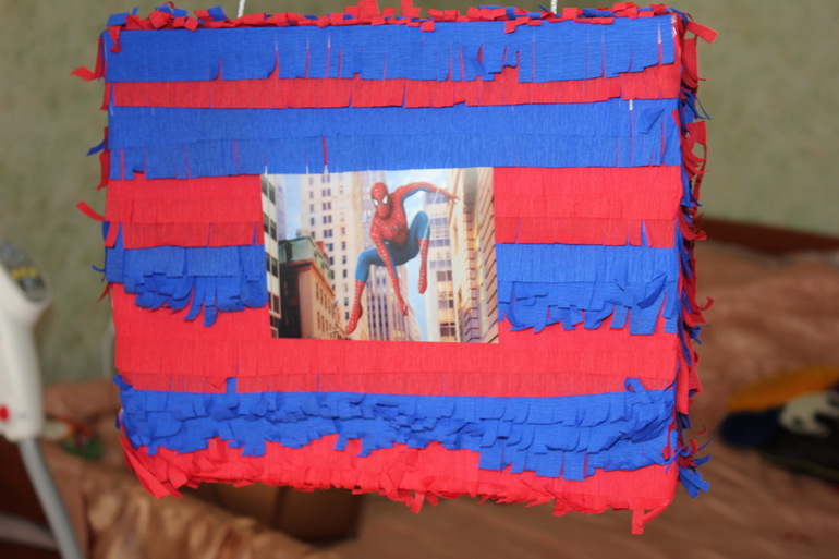 Когда все призы были разобраны, наступил следующий сюрприз для нашего Славика. Пиньята.... Как и в прошлом году делала ее сама. Правда не в виде цифры, как тогда, а более просто...