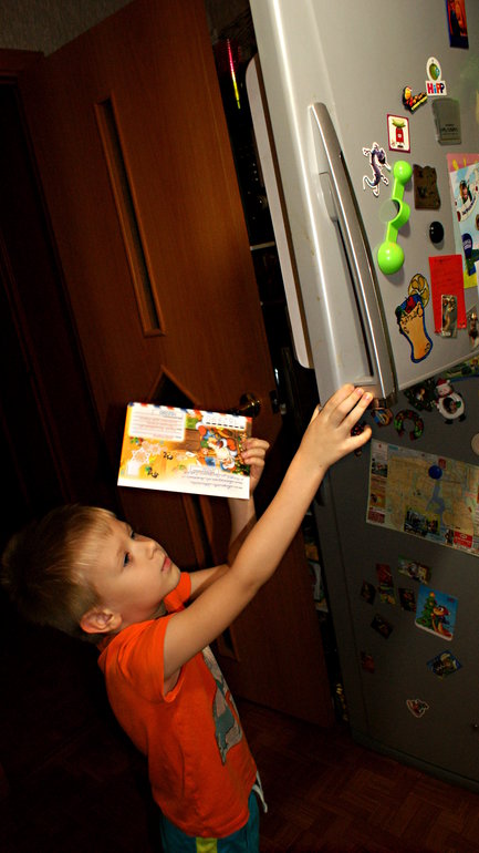 Пишем Волшебное письмо Деду Морозу, и положить в морозилку. А на утро обнаружили, что письма нет, а вместо него сюрприз (игрушка).