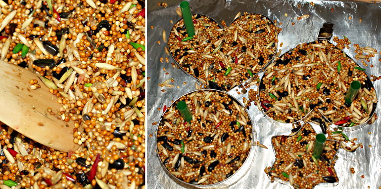 Рецепт: корма для птиц, желатин без добавок, формочки.