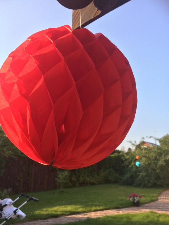 4. 5 фонариков, ярких бумажных с металлическим каркасом (можно вставлять лампочки и использовать как люстры, светильники)