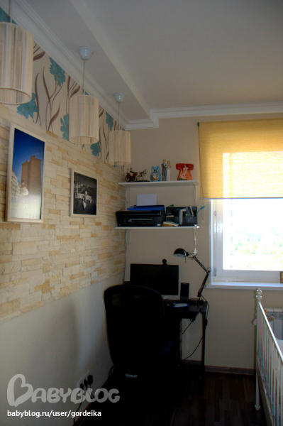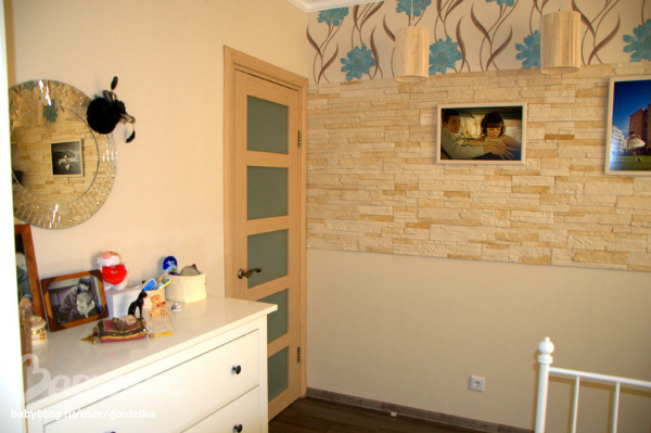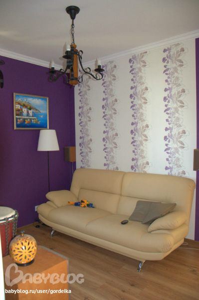 Дальше наша мини гостиная. Была одна большая комната - проходная, 23 м. Построили стенку, получилась мини- проходная гостиная и детская (фото ниже). Детке досталось окно и солнце по утрам)))) Гостиная получилась в полумраке, зато есть дверь на балкон и есть куда положить незваных гостей)