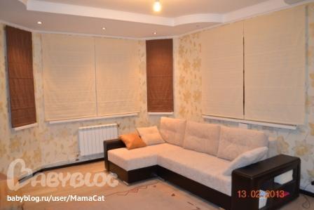 имеем проходную комнату с огромными окнами. я ярая противница занавесок, уговорила мужа на римские шторы. все что нам считали в салонах - выходило за 1т.р одно окно. А тут нашли в инете по акции в магазине за 550р шторы. решила не отказываться))))
