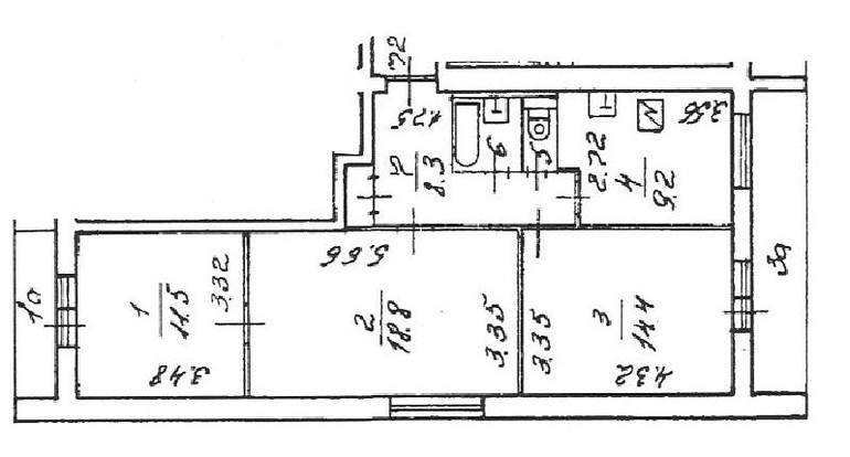 Перепланировки стен. Согласование перепланировки квартир и нежилых помещений.Квартира изначально, на плане №1