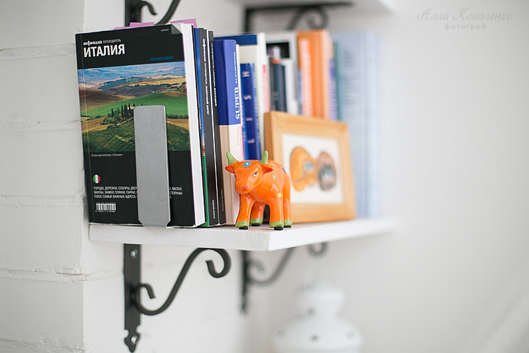 С белой мебелью тоже были трудности. Милый моему сердцу белый Хэмнес в Ikea три года назад еще не появился, а душа требовала мебель, и немедленно:) муж со вздохом поехал со мной в OBI за досками и краской. Пара недель со шкуркой и валиком в руках - и я сваяла рабочий стол и комод по индивидуальным размерам. Заодно остатками краски обновила раму для фото и сделала две книжных полки. Держатели не задолго до ремонта мы привезли из поездки по Италии. Там, на одной из чудных флорентийских улочек мы наткнулись на скобяную лавку. На обратном пути муж пер чемодан с коваными сувенирами, обещая мне это припомнить:) я вообще очень люблю привозить из поездок помимо стандартного магнитка на холодильник разнообразные полезные вещи, которые потом обязательно использую в хозяйстве. В нашем доме таких иностранных помощников огромное количество, и мы пользуемся ими практически ежедневно. Но это целая тема, которая достойна отдельного поста:)