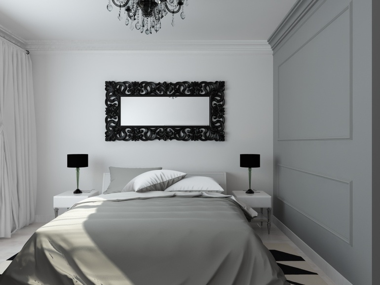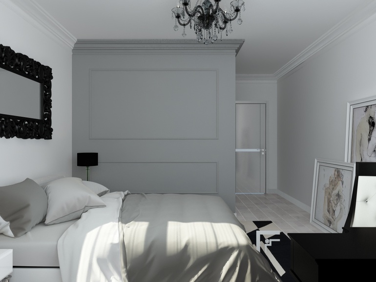 Стильно) можно маленький совет, серая стена "выпадает", не завершена, продлите потолочный карниз и если хотите сохранить монохромность, выкрасьте его в тон стены и на ней еще можно , например, сделать большую раму из молдинга, его тоже выкрасить в тон стены — рельефность добавит красивый штрих.