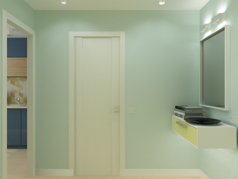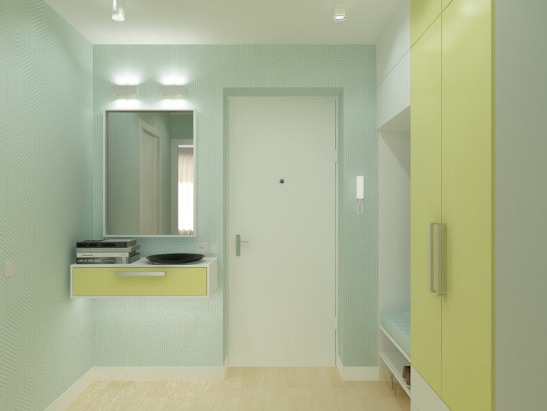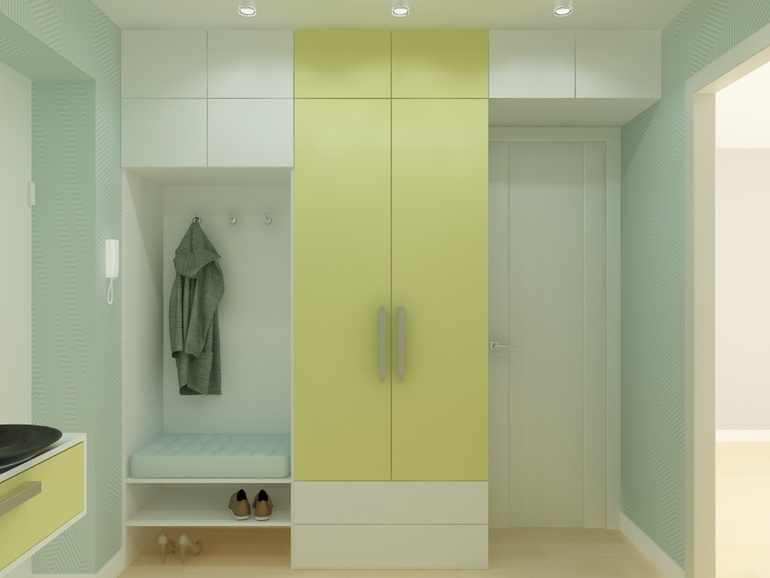 Встраиваем шкафы в прихожей и создаем вход в спальню через гардероб. Пока только визуализация прихожей и кухни)