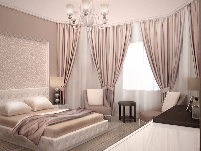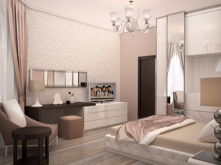 На мой взгляд через чур однотонно, возможно, всё дело в настройках визуализации. Потолок тоже розовый? Лучше сделать белый, и багеты, плинтуса тоже белые. Немного смущает ниша у изголовья кровати — ну как-то изжили себя эти сложные конструкции на стенах и потолках. Достаточно ли вам такого узкого зеркала над туалетным столиком? Оно выглядит только как декоративный элемент, наводить красоту с его помощью будет не удобно. Не забудьте продумать, где будите хранить косметику и украшения, т.к. в столике ничего для этого не продумано. Шкаф до потолка — это конечно стильно, но учтите, что его стоимость тоже взлетит до потолка.Я разобрала все со своей практичной точки зрения, возможно, у вас свое видение.