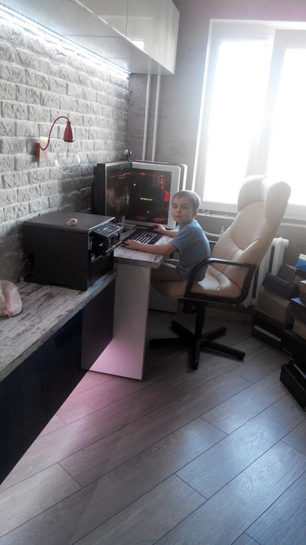 Имеем комнату в хрущевке, 14 метров. Имеем юношу 7 лет, которому в школу. Собственно, из-за него и весь кипиш. Был разобран огромный угловой шкаф, стол-подоконник. Работа адская, скажу я вам :) Проект готовила сама лично, долго вынашивала, потом так же долго, как всегда, убеждала мужа :) Ну и вот результат.