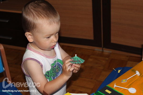 Зонтики тоже очень понравились, открывал-закрывал. Долго так их трогал, рассматривал. Сначала все зонты у всех забрал, потом пытался всем раздать.