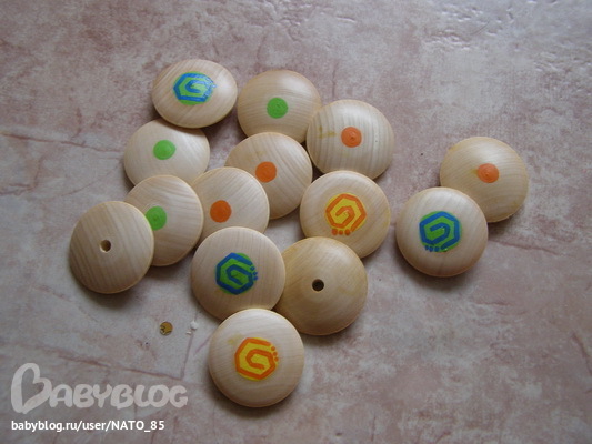 У нас они правда без плошки, но пока она нам и не нужна. Играем мы с ними по нескольким вариантам. Во-первых, просто нужно ударяя битой (раскрашенной блошкой) по своим блошкам перевернуть их на другую сторону (т.е. с одной стороны у них нарисован однотонный кружок, а с другой кружок уже с рисунком). Во-вторых, мы устраиваем блошиные гонки, т.е. я делаю 2 дорожки и нужно ударяя битой провести блошку по этой тропинки. Ну и в-третих, просто Лизе нравится колошматить по блошкам) Тут ведь главное процесс!