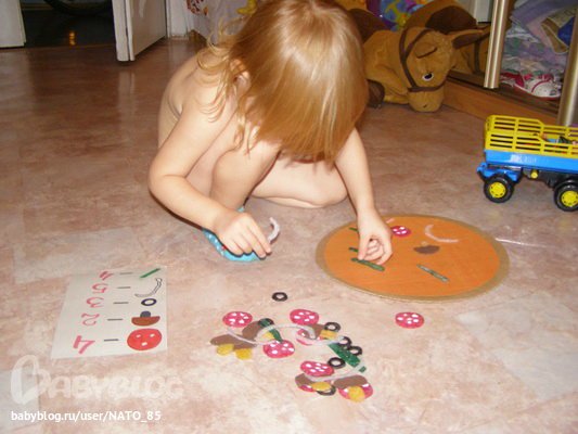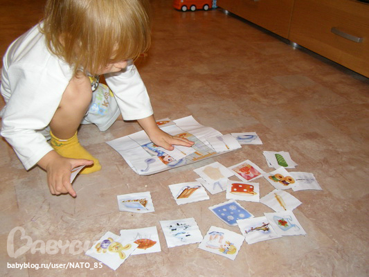 Лизик сначала старалась нужную карточку приложить именно к картинке, но когда все не помещалось, согласилась что проще скрадывать на белые квадратики, тогда становится видно саму картинку и можно искать дальше.