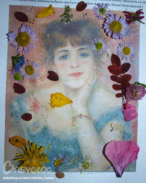 А это "Портрет Жанны Самари". Украшали листочками и цветочками.