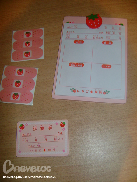 В наборчик входит-планшет для рецептов,лейкопластырь,бейджек