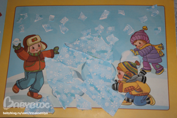 В ЭМВМ -Времена года-разорвав листочки сделали снежную крепость и снег