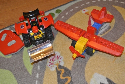 Погрузчик на пульте управления и самолет (пилот куда-то делась, но он есть)