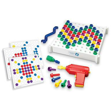 Ванечке купила не помню когда, Анюта с года уже точно вставляла болтики в дырочки.