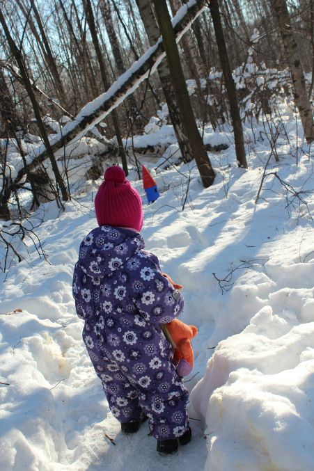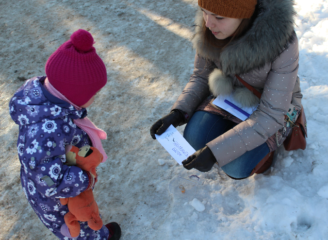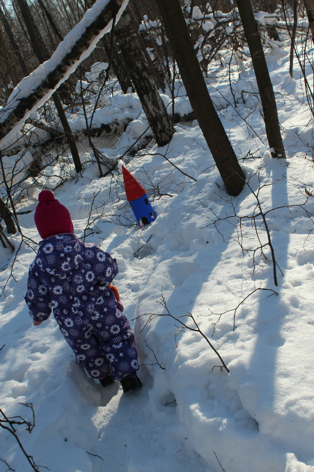 Она шла немного впереди, а я просто протянув немного руку бросала сюрпризики и задания - у моей девочки было ощущение, что все это падает с неба ))