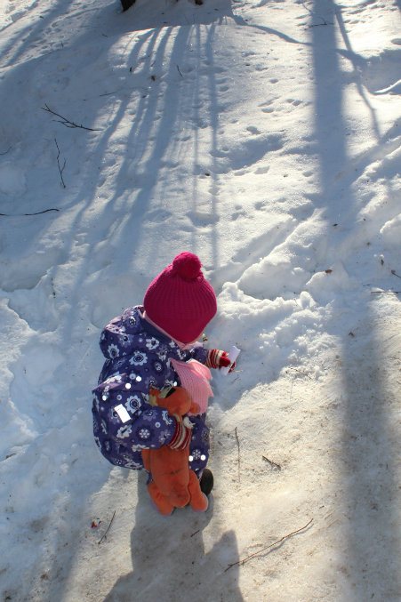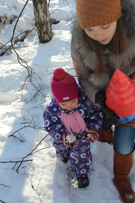Хочу отметить пользу искалок - Алисик раньше не замечала лыжников, а теперь прям каждый на счету, то же самое касается и еловых веточек )) Так что это отличный способ сделать ребенка более внимательным на прогулке )))