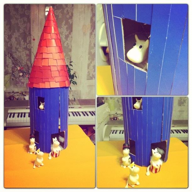 Девочка моя просто влюблена в Муми-дом и его обитателей - играет с ними целый день напролет, мы ее покушать не могли уговорить - столько у нее историй разных, связанных с ними )) А какая еще лучше может быть награда за мои труды )))