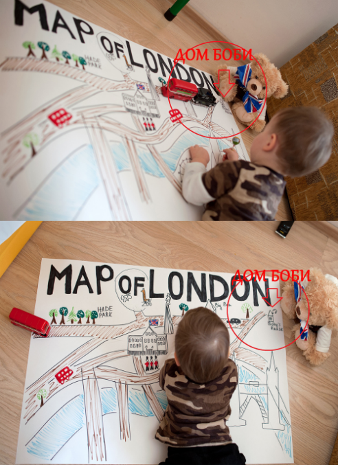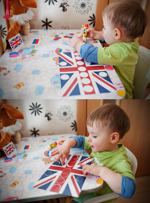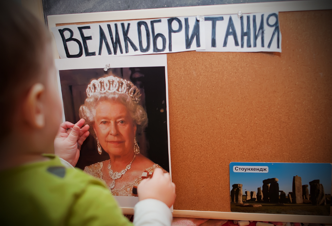 Как итог Сашка знает очень хорошо БИГ БЕН, не очень, но все же знает Королеву, хорошо отличает флаги. Знает что в других странах говорят на других языках. Помнит где находится на карте дом Боби :))) И даже озвучивает "Еликобитания" :)))