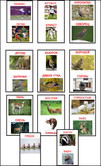 Познакомились с видами спорта, птицами и животными с помощью самодельных карточек.