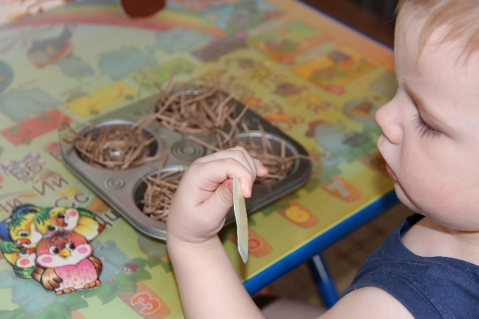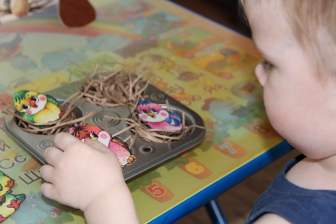 Нужно было рассадить птичек и птенцов по гнездышкам. Долго любовались птичками, они у нас летали сначала, потом прятались и только потом уставшие уселись в свои гнезда))))