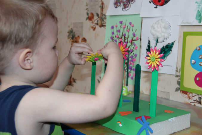 Задача! Нужно на каждый стебелек прикрепить цветок-прищепка! Надо сказать это задание Алешка с большим удовольствием выполнял!!! Что для него собственно не характерно!!! Одел все!!! Ну ладно, парочку я ему помогала)))