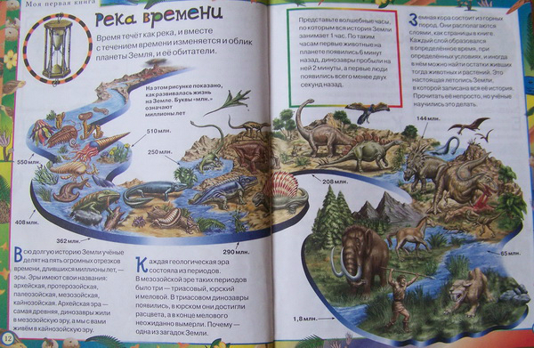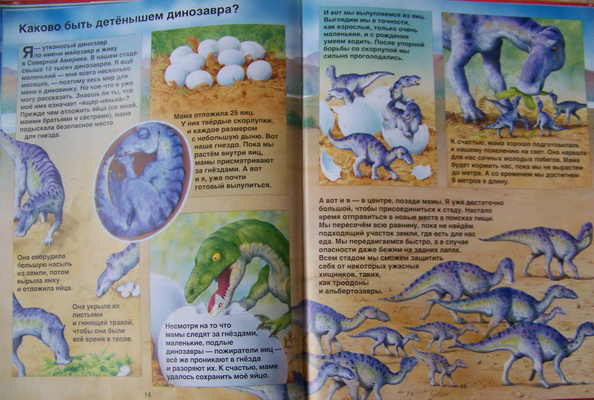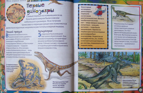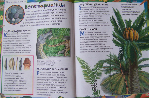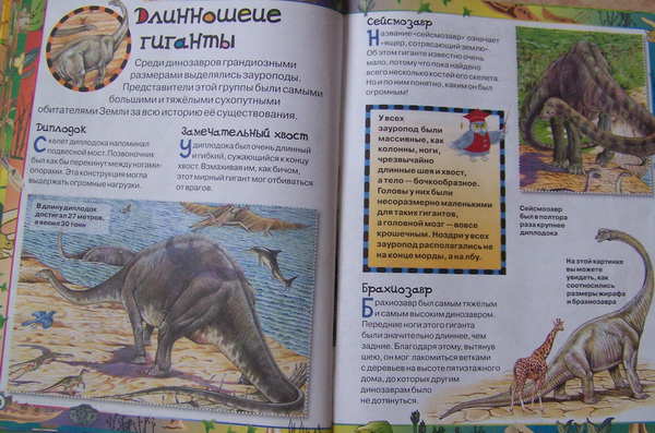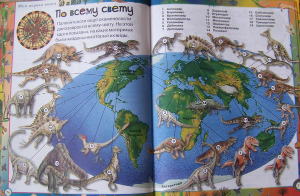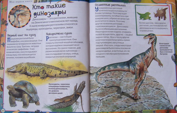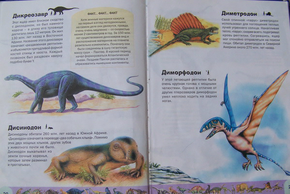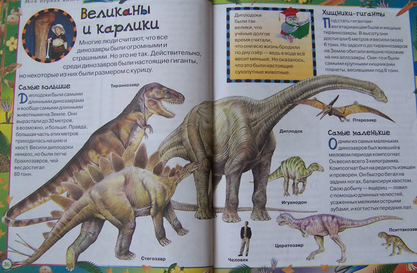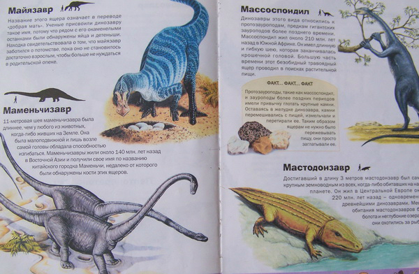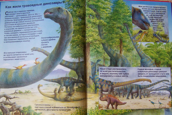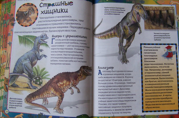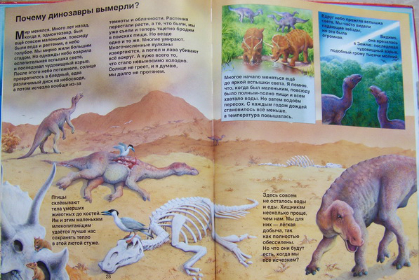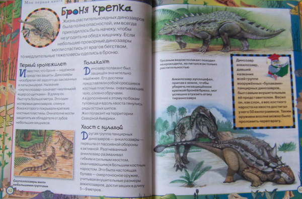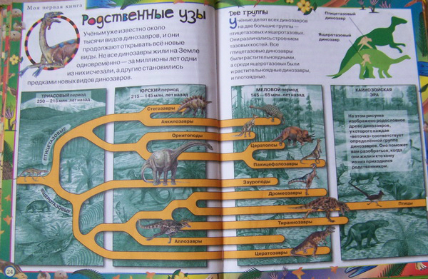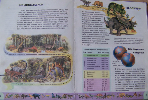 Книгу брала в большей степени для себя, так как сама кроме нескольких основных динозавров ничего не знала))) Мне она помогла во многом разобраться, и стала отправной точкой в беседах и рассказах. Лиза же просто использовала как наглядный материал, что тоже очень полезно.