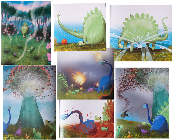 Книжка сразу привлекла внимание доченьки из за яркого оформления и минимума текста. еще очень ей понравилось, что рассказ идет как бы от самого динозавра, который изображен на странице. содержание не навязчивое, легко усвоилось доченькой!