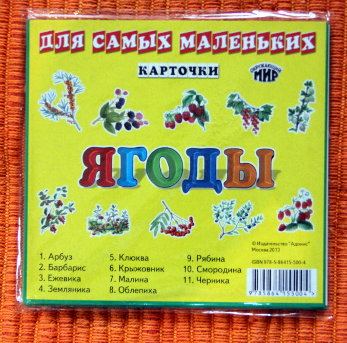 4. Карточки "Ягоды". Тонкий белый картон, карточки большие (сторона размером с карандаш примерно).