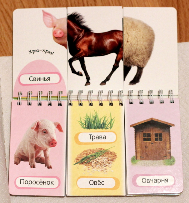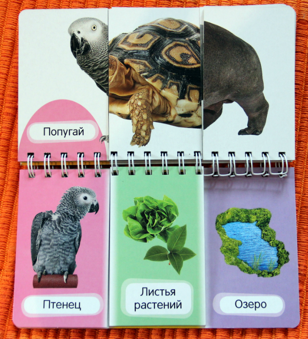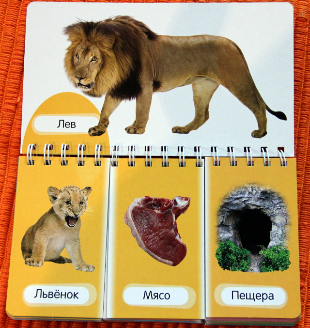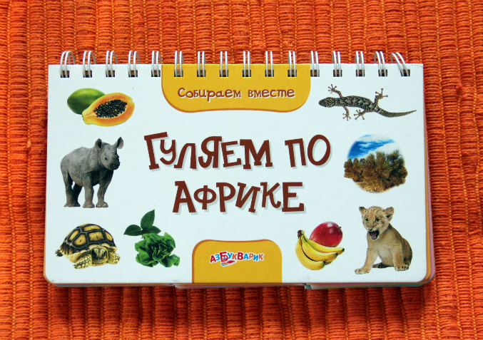 1. Переходного типа :) Между игрой и книгой - отличные азбуквариковские книжки с натуральными фотографиями, нужно сопоставить разрезанные части - получится картинка с животным, его детёнышем, пищей и местом обитания. Плотный ламинированный картон.