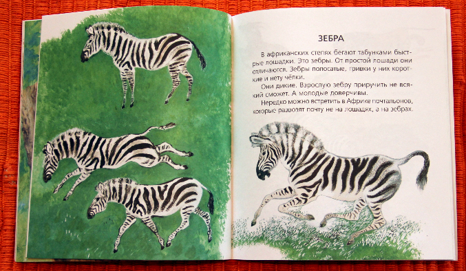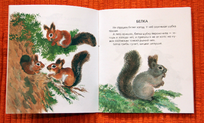 "" (по развороту про тетёрку, белку, зайца, лису, волка, медведя, верблюда, зебру, льва, тигра, слона) и "". (Вот здесь у меня много разворотов)