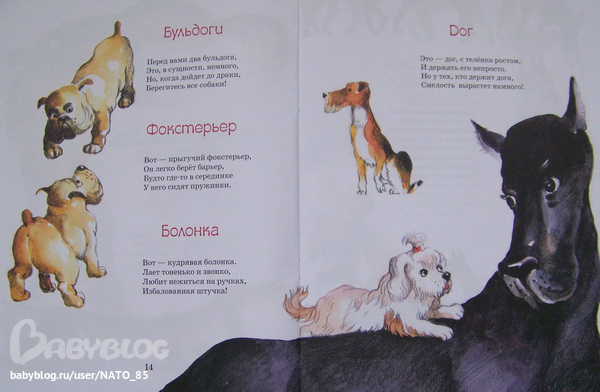Мы обожаем эту книжку! Милые рисунки, приятные стихи... Особенно Лизе понравилось про Тузика и Барбоса, и практически сходу запомнила стишок про Бульдога)